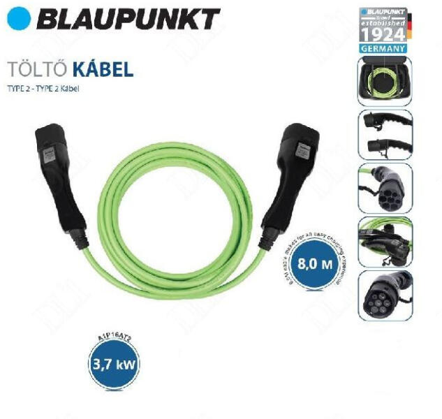 Blaupunkt Type-2 3,7kW töltőkábel elektromos autókhoz 8 m Termék jellemzői: