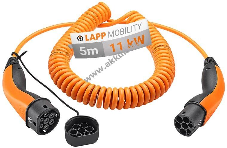 LAPP Type 2 spirál töltőkábel plug-in hybrid és elektromos autóhoz 11 kW-ig, 5 m, narancssárga