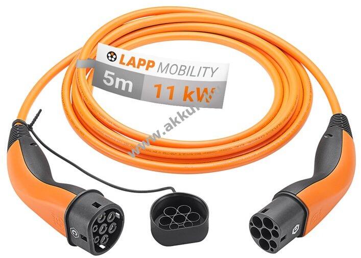 LAPP Type 2 töltőkábel plug-in hybrid és elektromos autóhoz, 11 kW-ig, 5 m, narancssárga